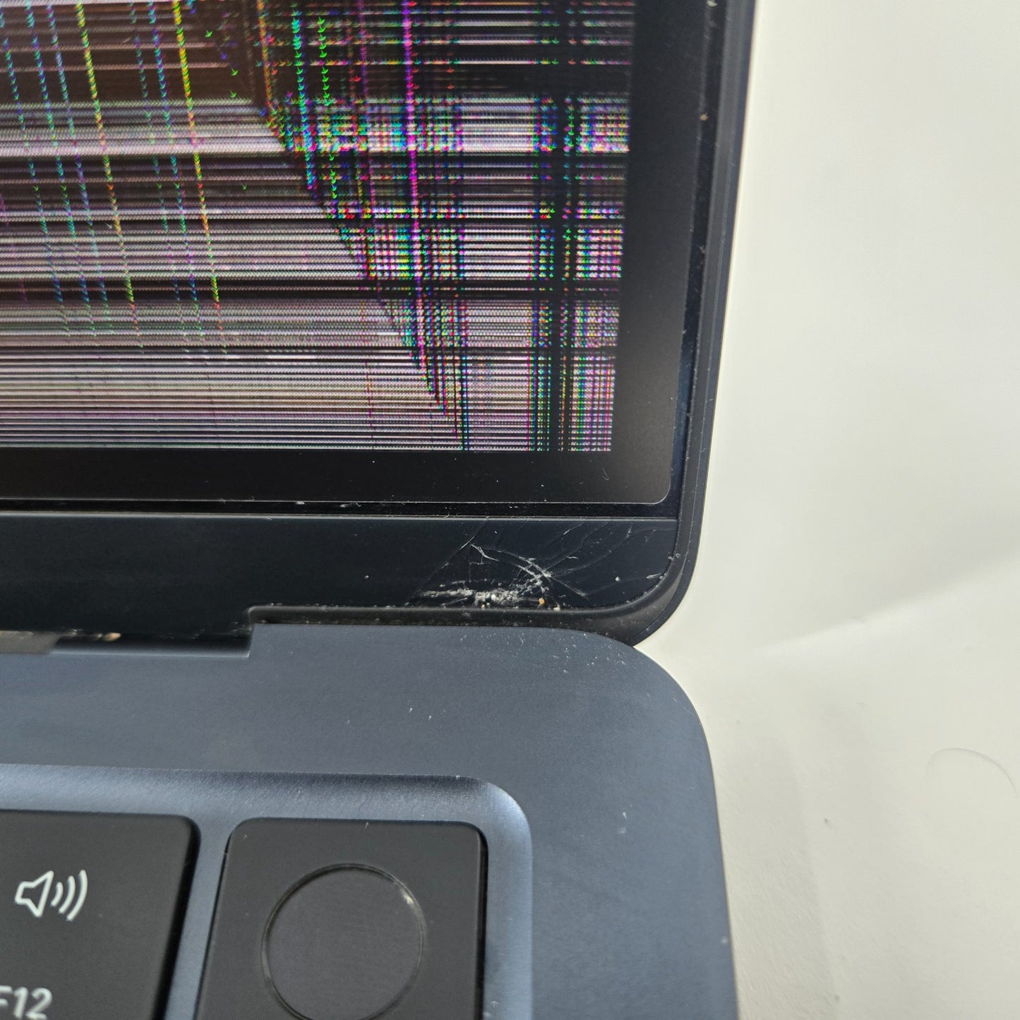 The LCD is completely black or is broken to the point where you can't see anything on the screen. The screen is cracked/damaged and shown in the images. I was able to connect to a WiFi network and test the audio by playing a video. The WiFi and audio are both fully functional. The keyboard has been tested and all keys function properly. The touch functions have been tested and are fully functional.