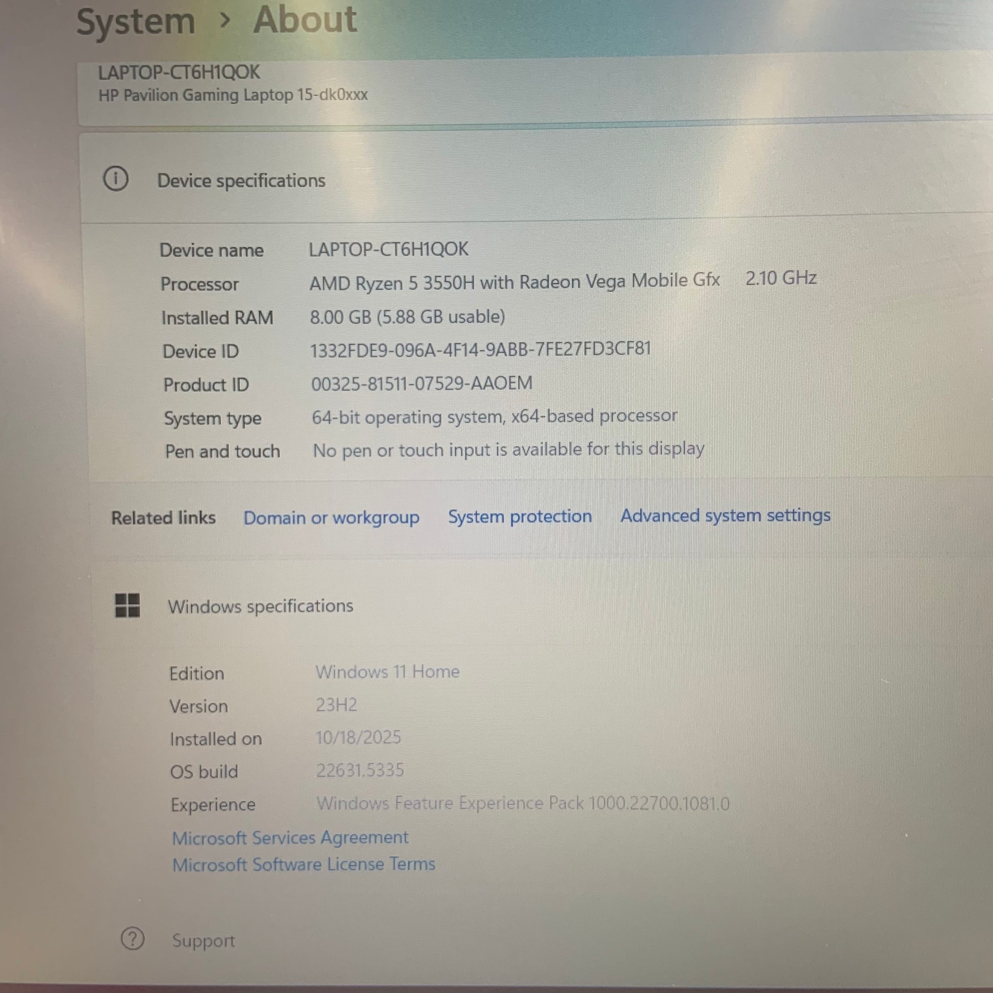 | Processor | Ryzen 5 3550H