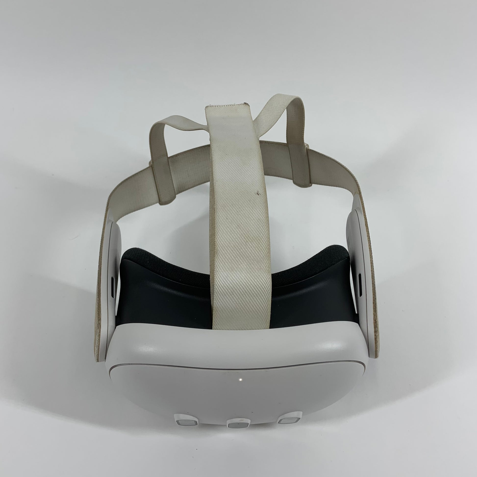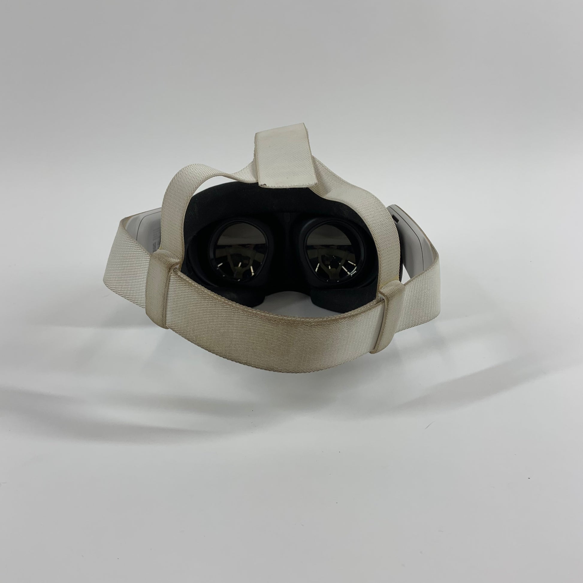 The left and right screens are in good condition, showing light but noticeable marks from use that aren’t too significant. The casing is in poor condition with heavy, very noticeable scuffs, dents, scratches, and overall wear. All ports are clean and in good condition. The headband shows discoloration from heavy use, and the controller(s) are in poor condition with moderate to heavy scuffs, scratches, and wear. The facial interface is in good condition with light but noticeable wear, and may also have some small cracking, scuffs, scratches, and/or wear. For consumer health and safety, a silicone cover for the foam facial interface is included.