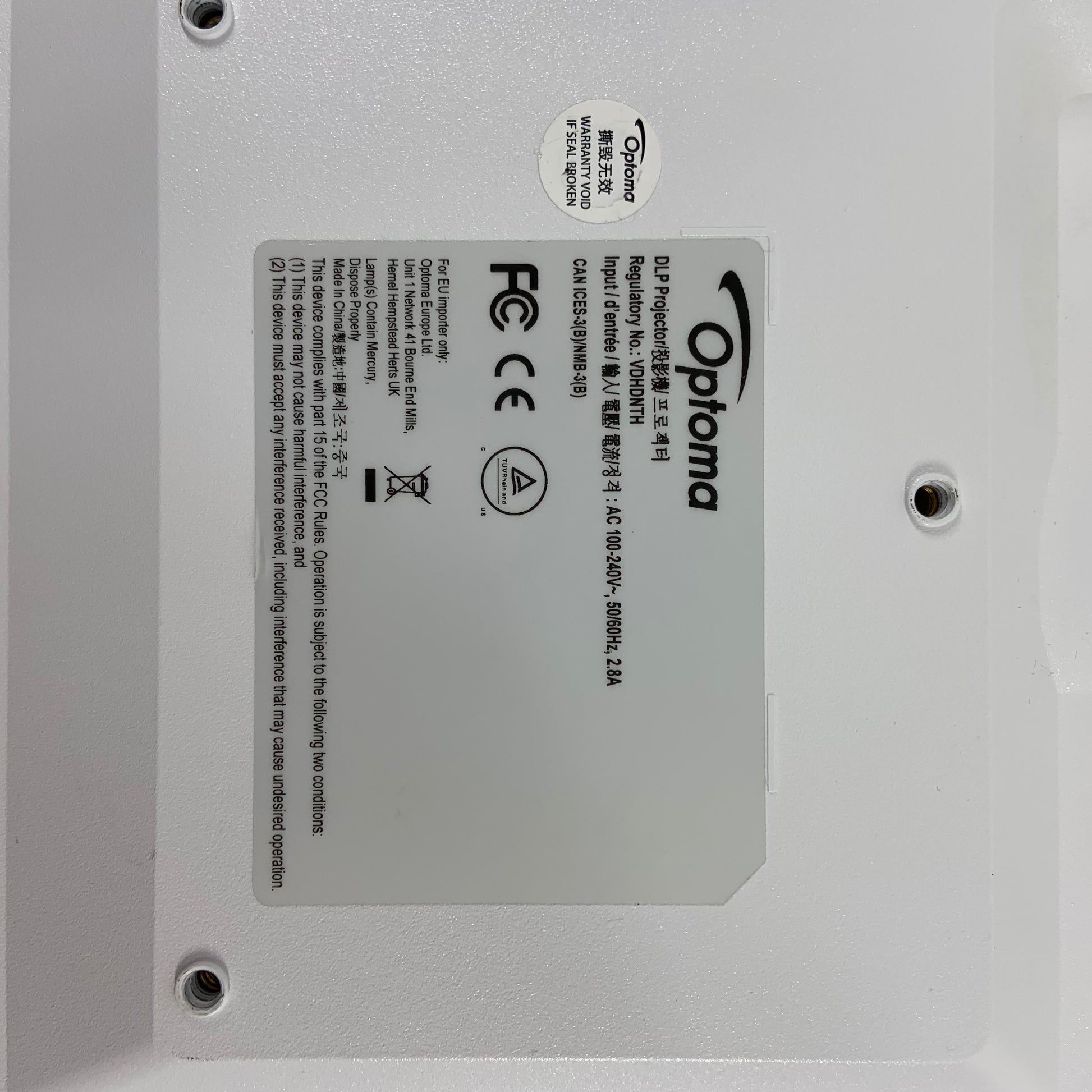 Optoma DLP Projector 1920 x 1080 3,600 Lumens 307 Hours Long Throw Lens VDHDNTH